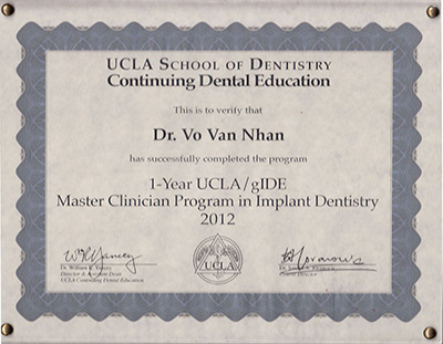 Tốt nghiệp Master Clinician In Implant Dentistry của Đại học UCLA, Hoa Kỳ (2012) & Đại học New York - NYU (2010).