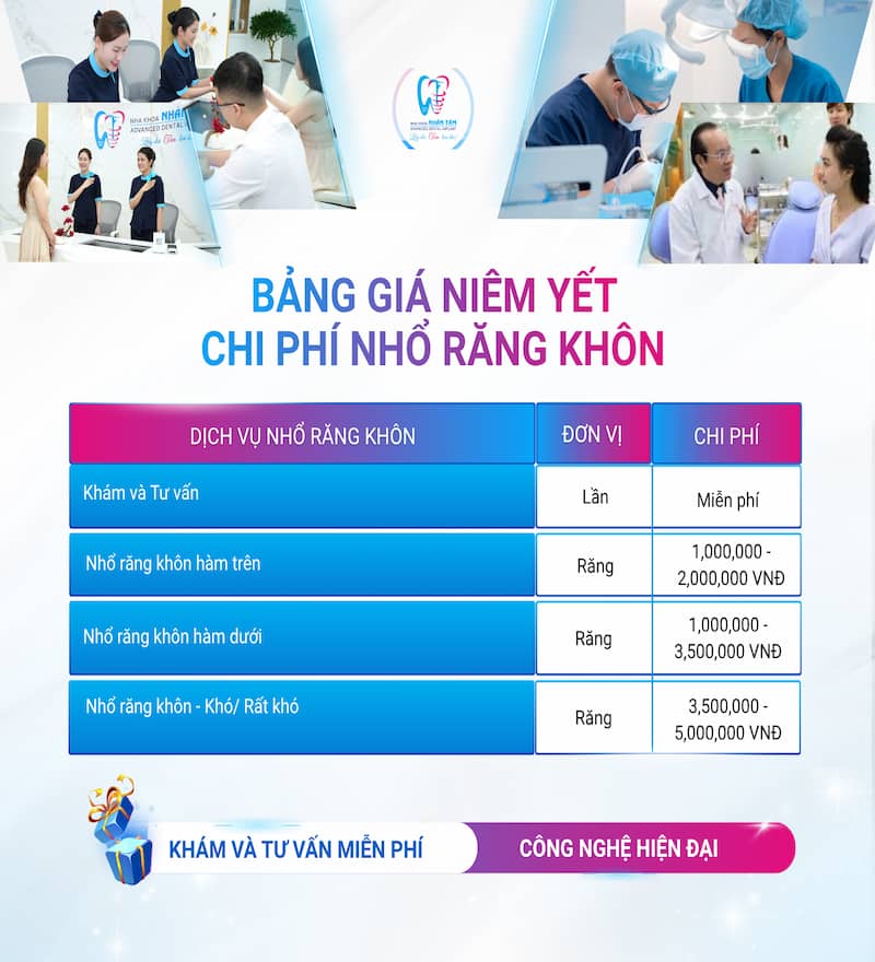 Tuy nhiên, chi phí nhổ răng không cố định và khác nhau tùy vào từng trường hợp cụ thể. Để có thể tư vấn chính xác về chi phí nhổ răng khôn, khách hàng nên tới những phòng khám nha khoa uy tín, chất lượng để được tư vấn bởi các bác sĩ có trình độ chuyên môn.